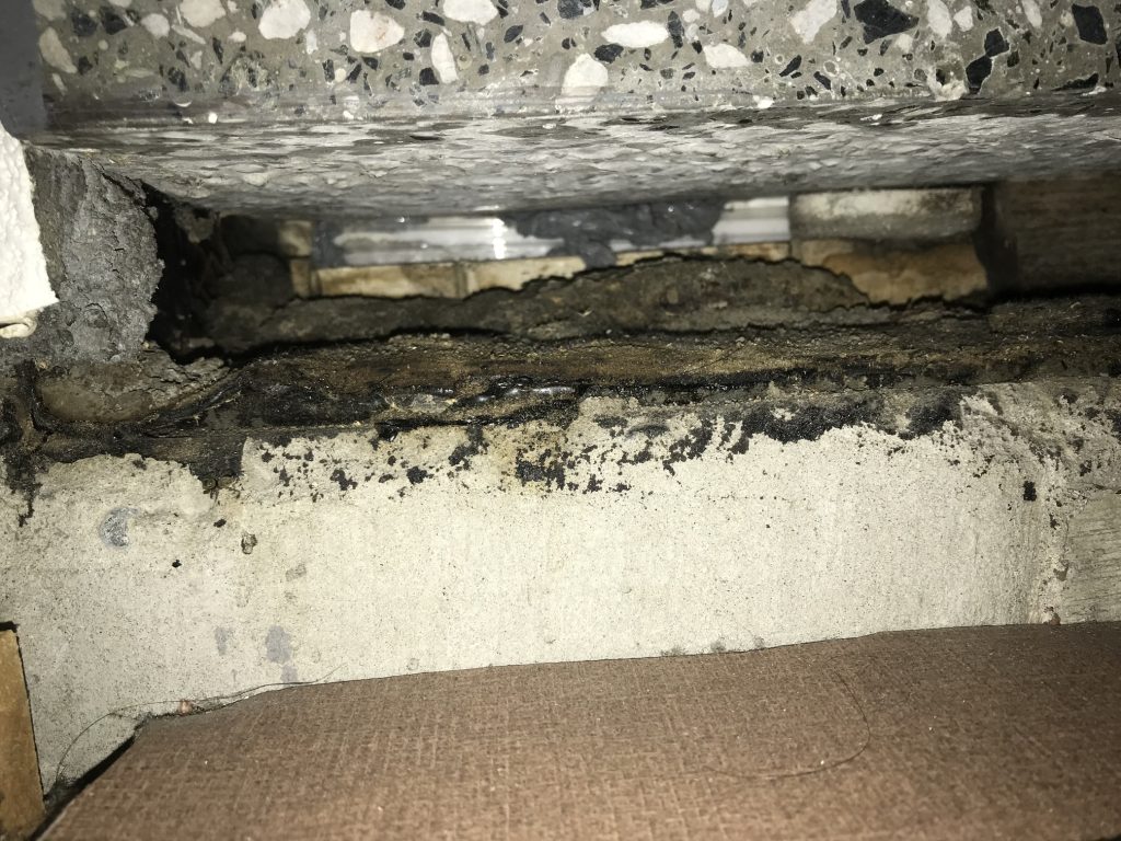 入口サッシ下部に空洞ができていて、奥が見えてしまう状態でした。