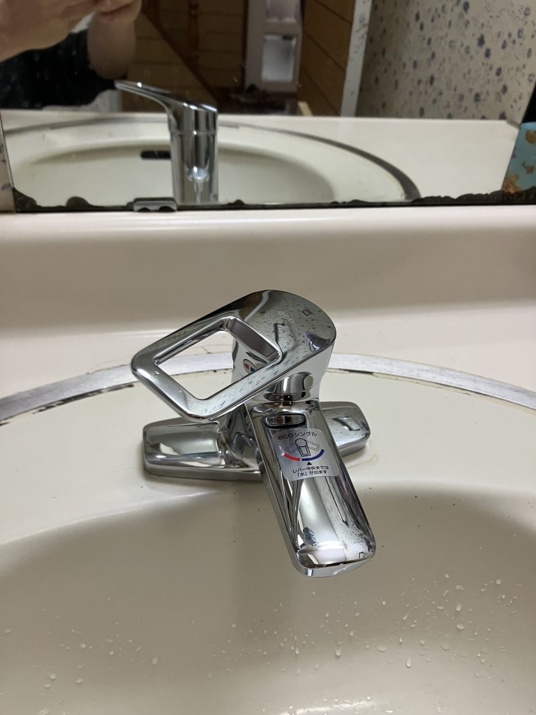 洗面水栓交換作業後