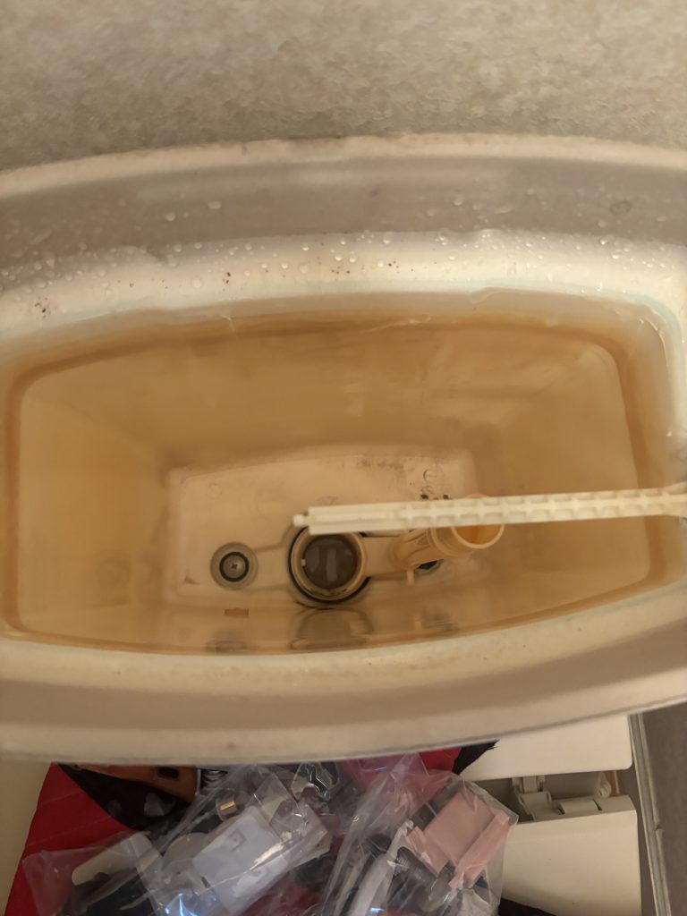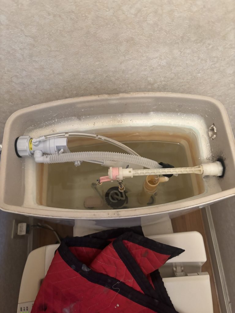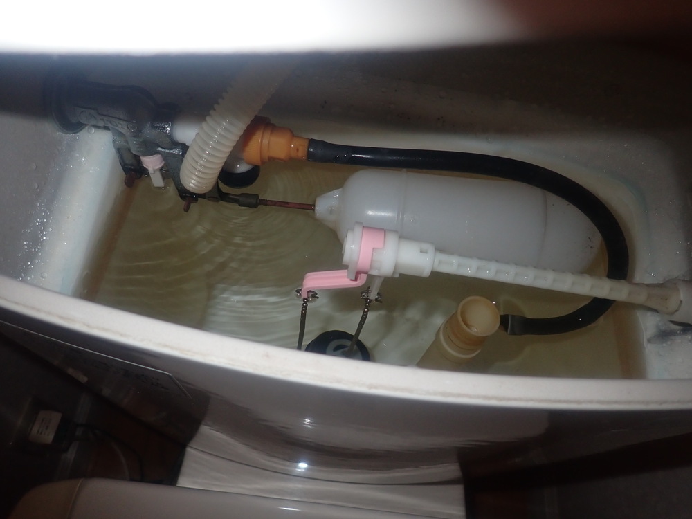 トイレタンク内部品交換工事作業中