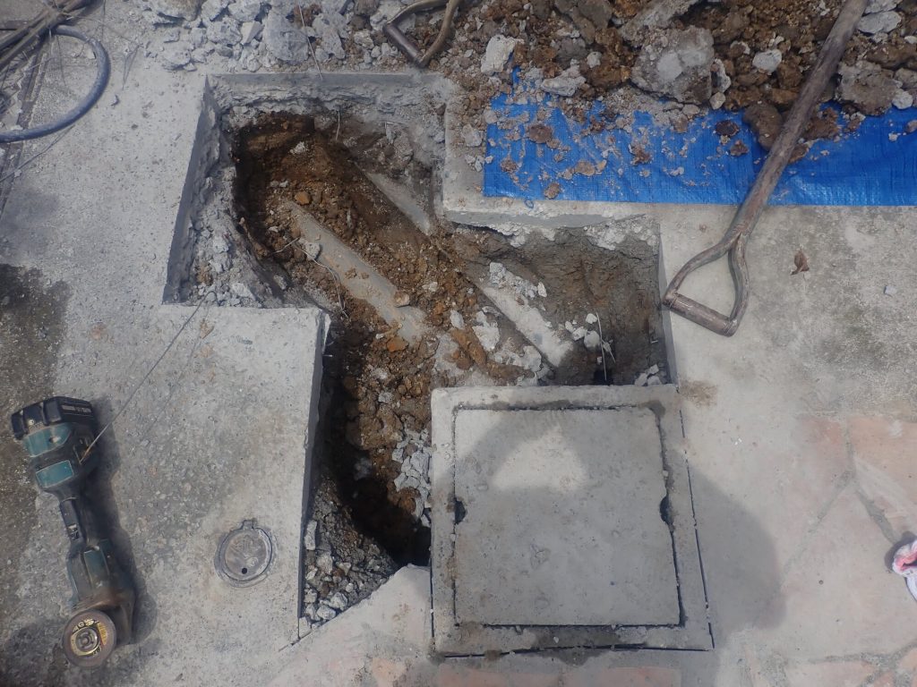 お客様より、汚水マスが陥没しているので治してほしいとのご依頼を受けました。