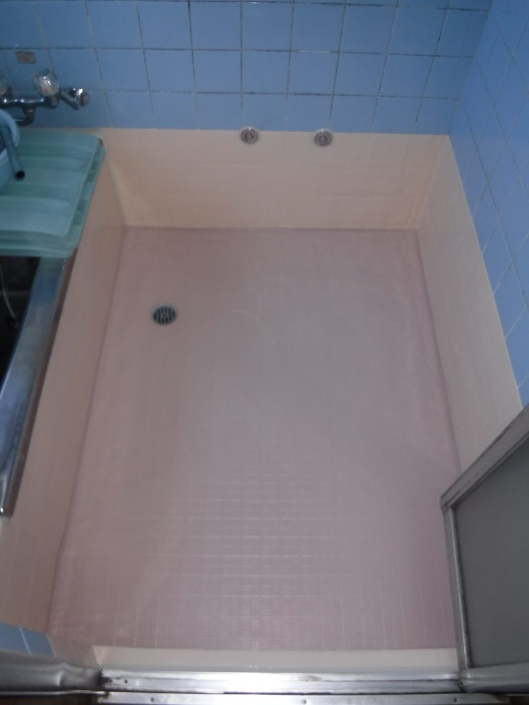 エポキシ樹脂防水及びバスナフローレシート貼り作業後