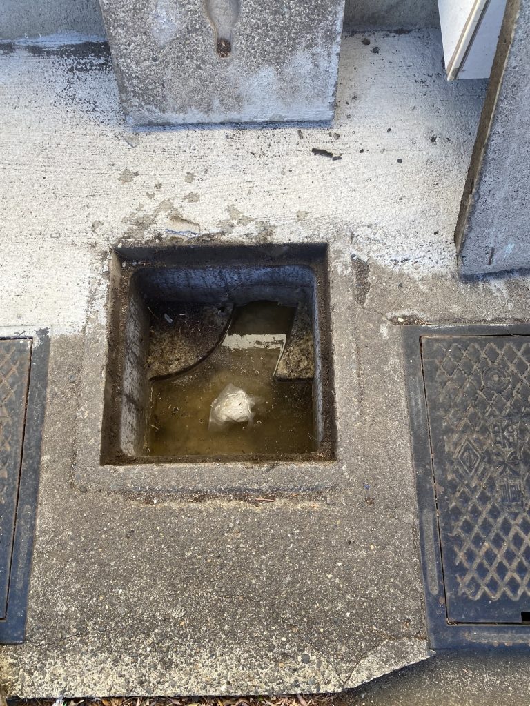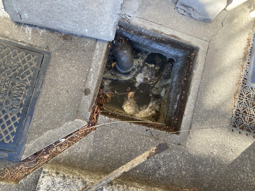 お客様より、汚水マスが詰まってしまったので詰まりを除去してほしいとのご依頼を受けました。
