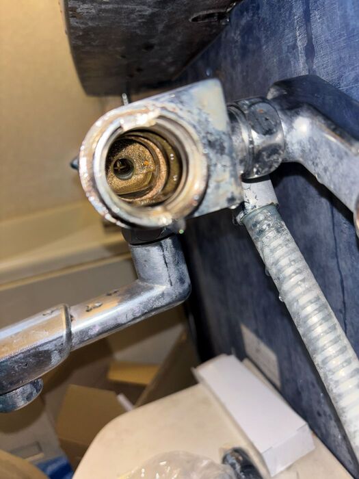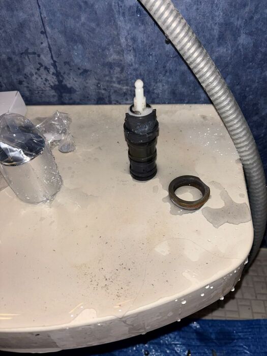 浴室水栓部品交換作業中