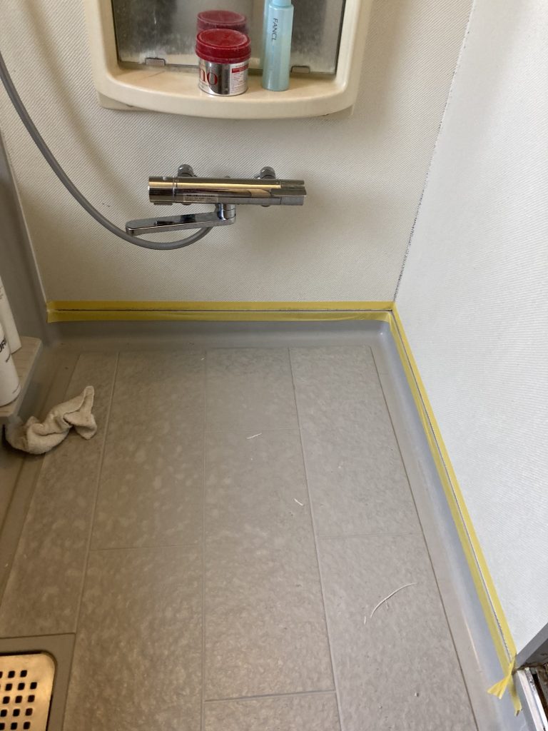 浴室コーキング打ち直し工事作業中